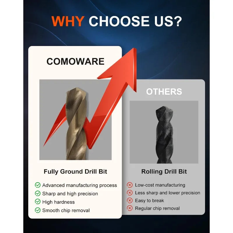 Professional & Widely Use - This cobalt drill bit excels in drilling stainless steel, copper, cast iron, aluminum alloy, plastic and wood. Engineered for precision, these drill bits deliver unmatched durability across metalworking applications.