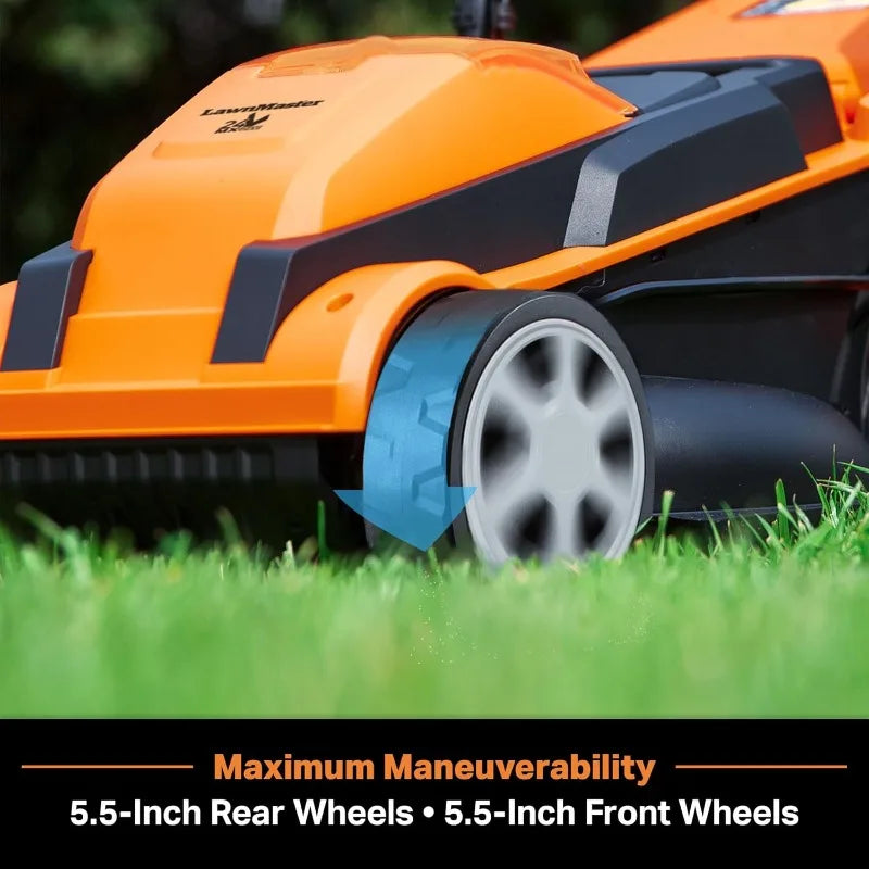 MAX MANEUVERABILITY: Features a 13-inch deck width and 5.5-inch rear wheels for easy navigation around the lawn