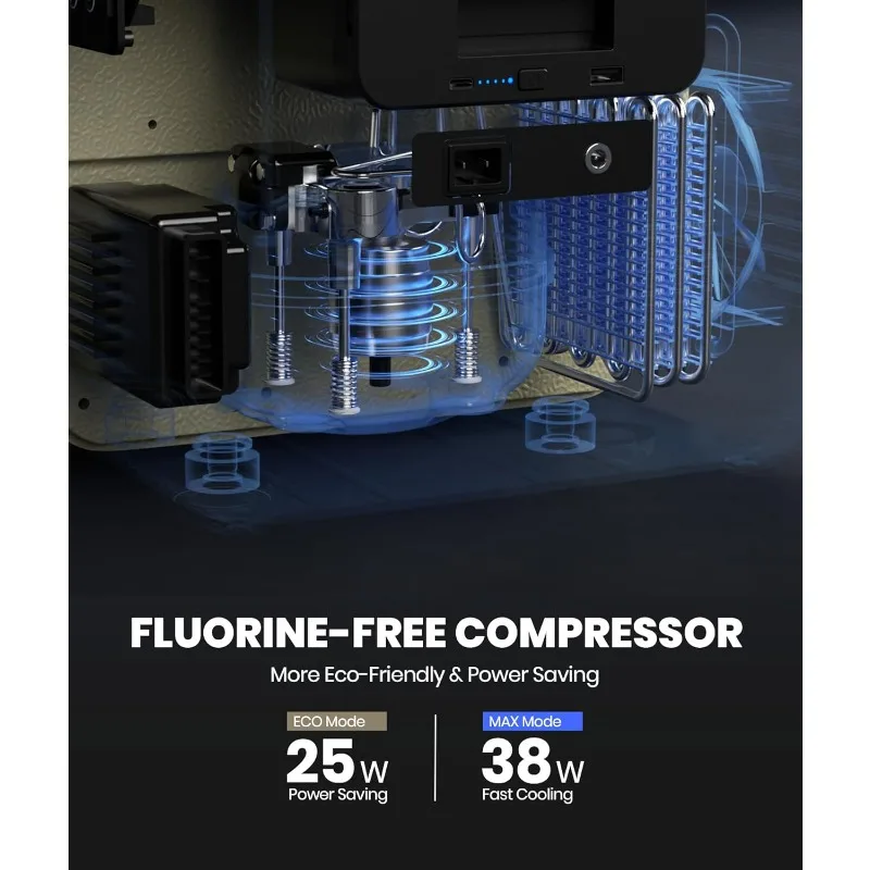 10 Mins Cooling down to 32 ℉: The powerful fluorine-free compressor ensures fast cooling down from 77 ℉ to 32 ℉ in just 10 mins and 77 ℉ to -4 ℉ in just 25 mins. The thickened EPDM interior (appro.2") provides better insulation and sealing than common portable freezers on the market. Even if the refrigerator is powered off, it can keep cool for a few hours like a cooler box