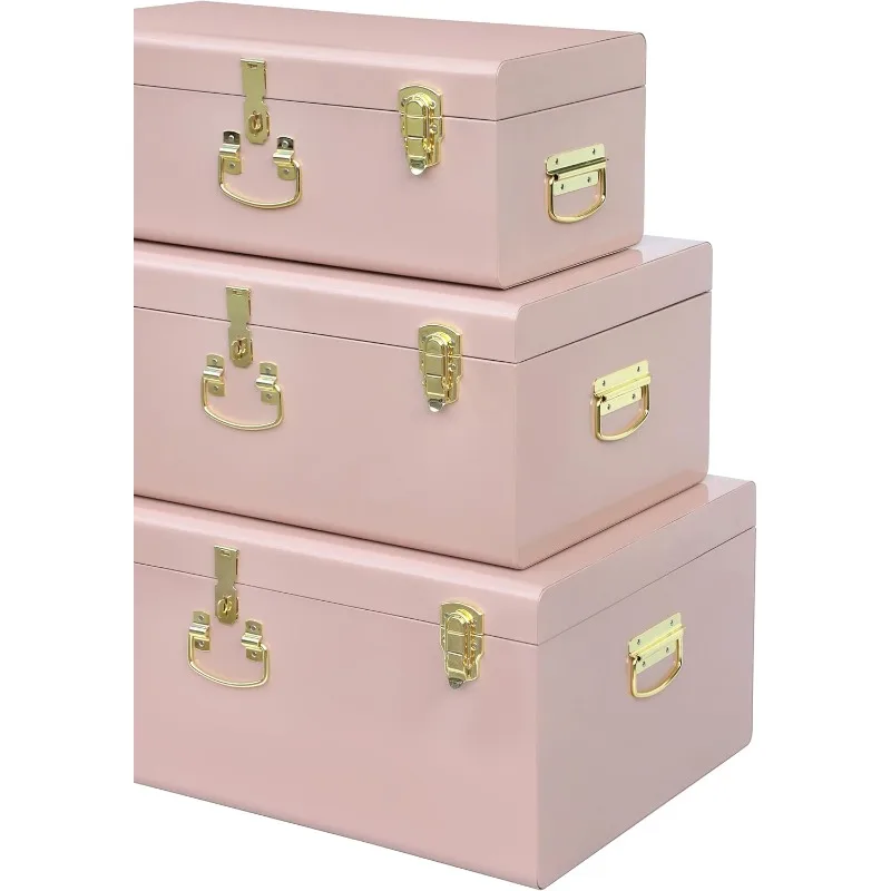 Decorative Box Set Of 3 Metal Trunks Chest With Safety Lock Clasp For Treasure Organization And Home Dorm Decor,26.8x16