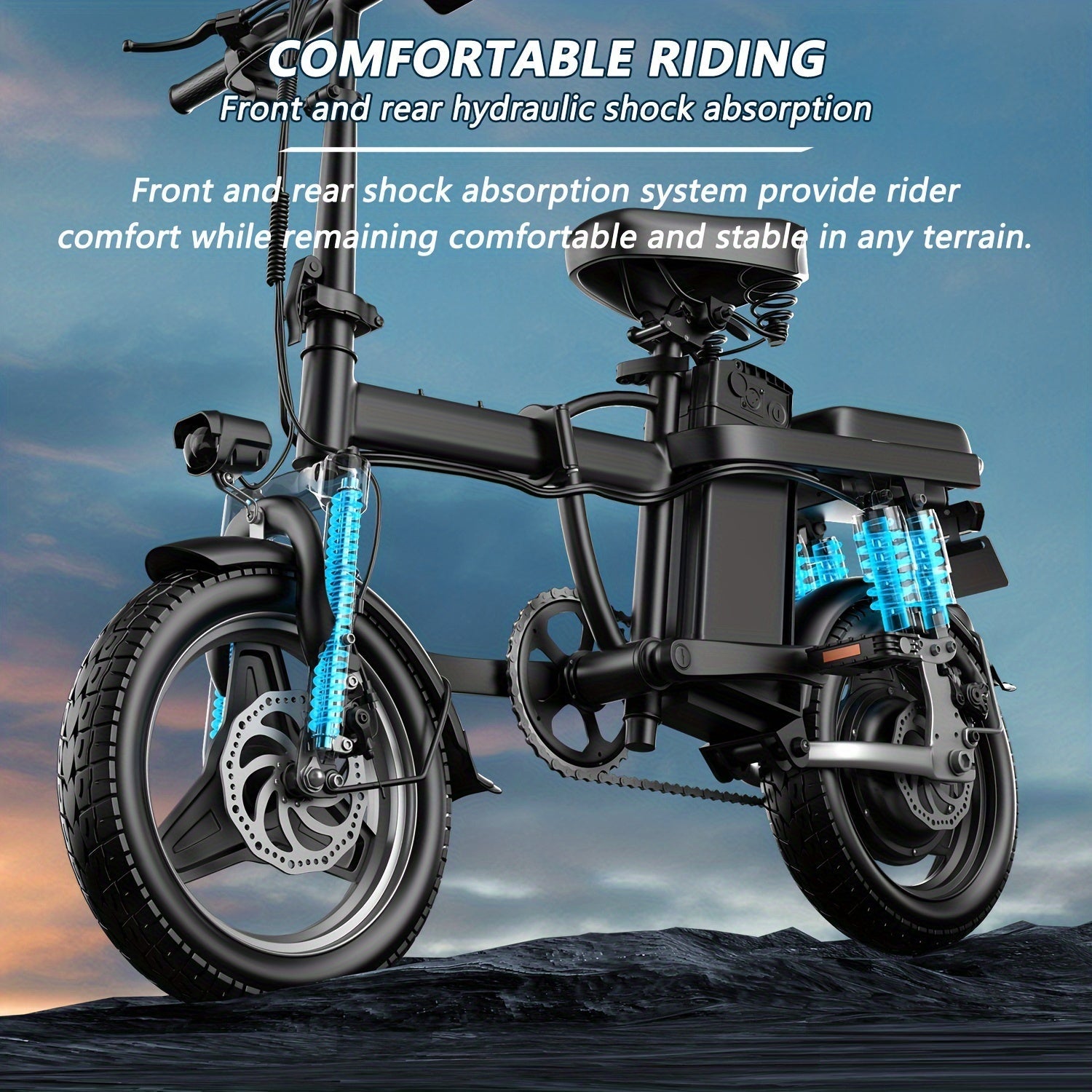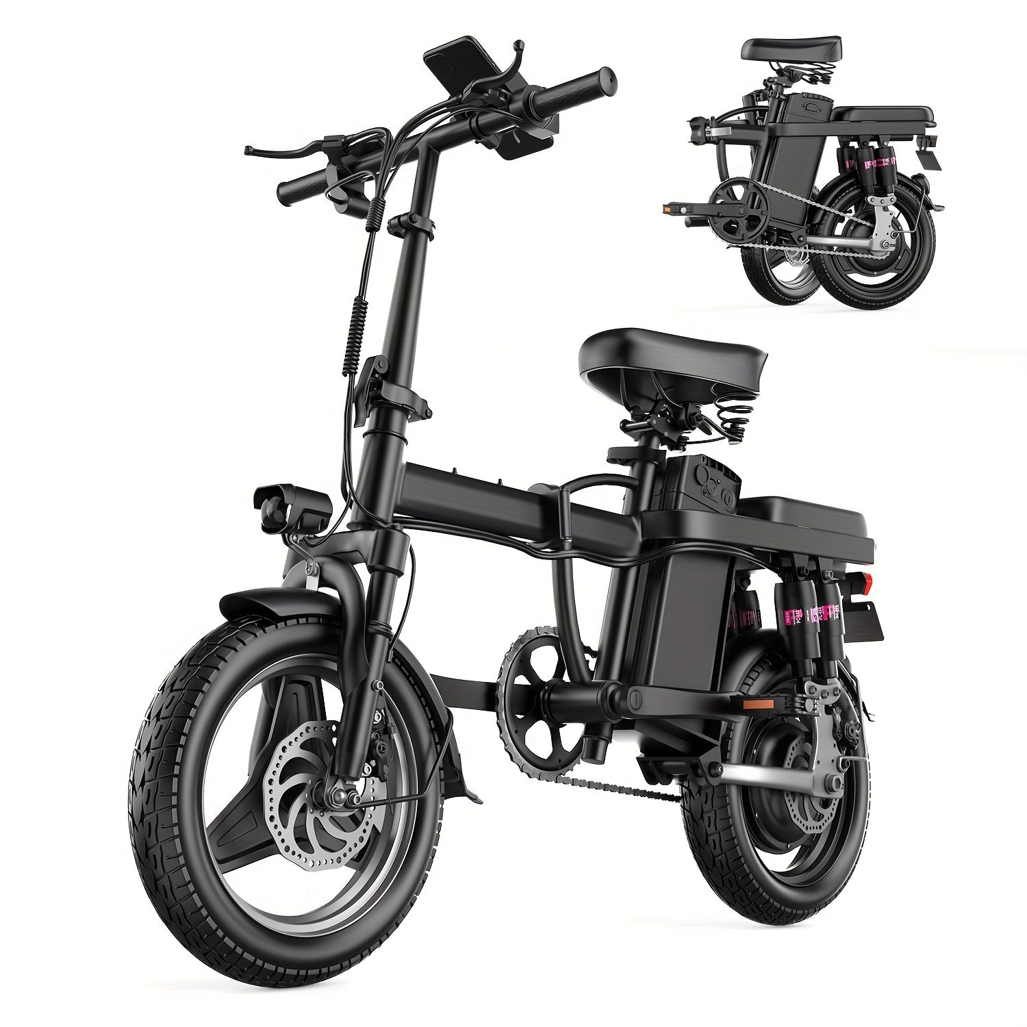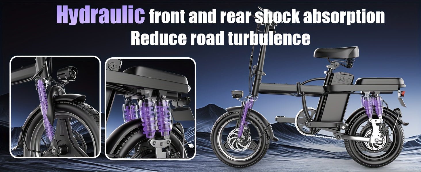 Electric Bike, 500W Motor, 14" Tire Folding Mini Ebikes For Adults, 20MPH 25Miles Range Commuter Adults Electric Bicycle, 48V 13AH Battery, Dual Suspension