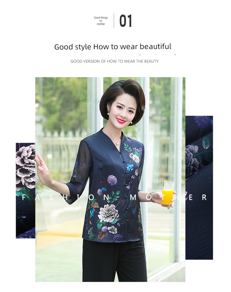 Fashion Mulberry Silk Top Middle-Aged and Elderly Shirt Summer Wear