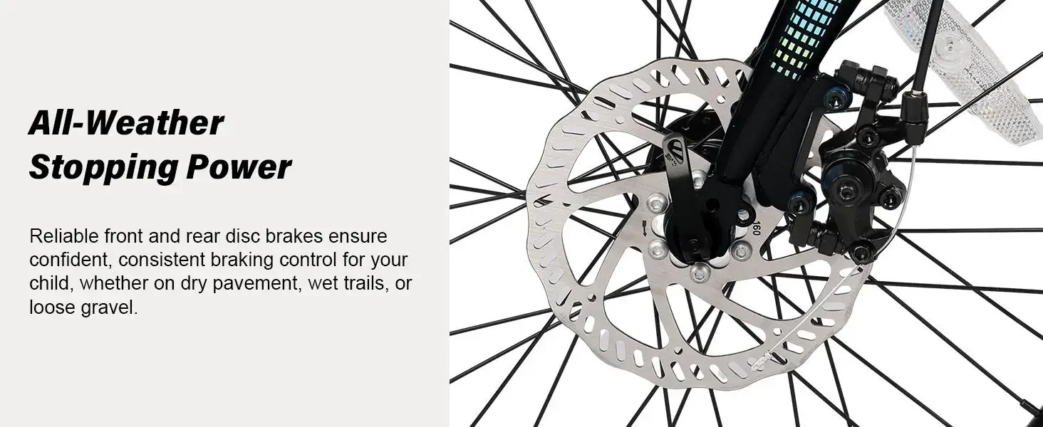 - 【Great Braking System】Disc brakes allow for more precise and controlled, are more effective than rim brakes, help to keep safer when riding at high speeds, down slopes and in wet conditions.