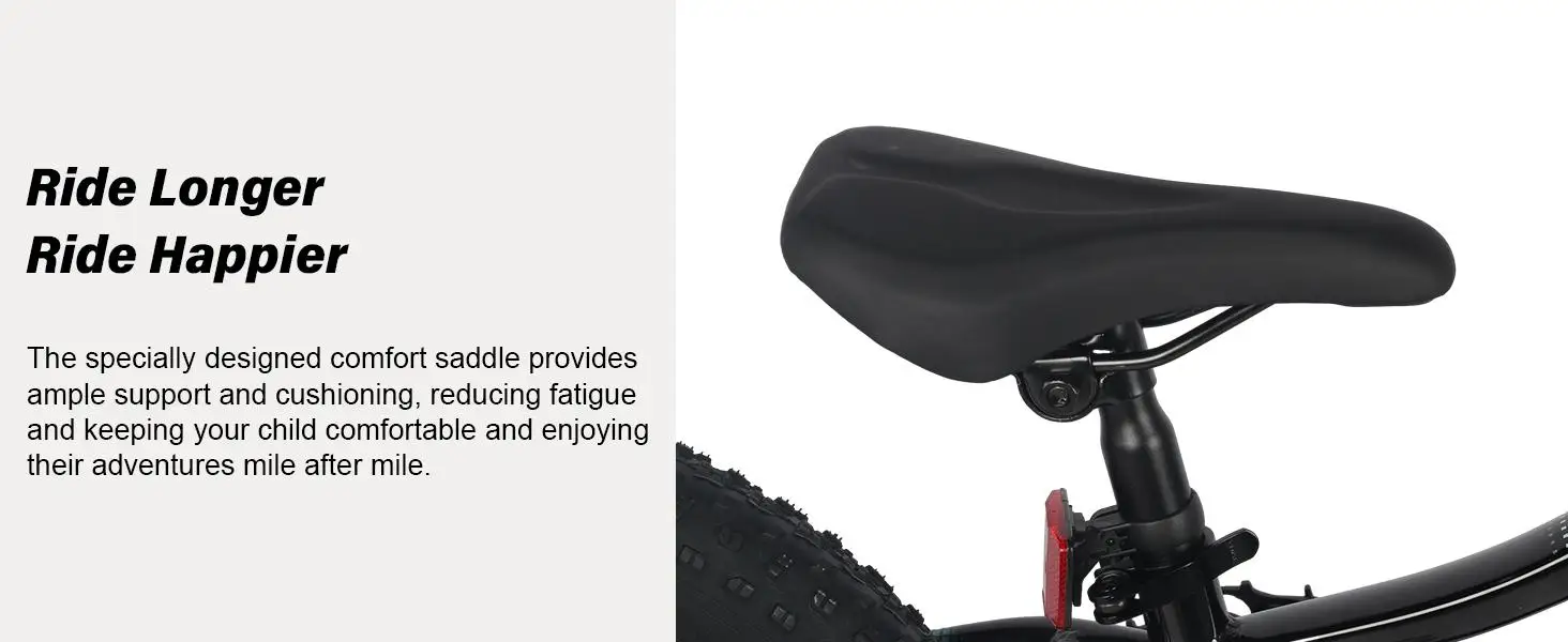 - 【Wider Tires】 20 x 2.8 inch knobby mountain fat tires provide excellent stopping power and tons of traction in sand and snow. This kids bike with soft seat offers more comfort in riding. Kickstand is included.