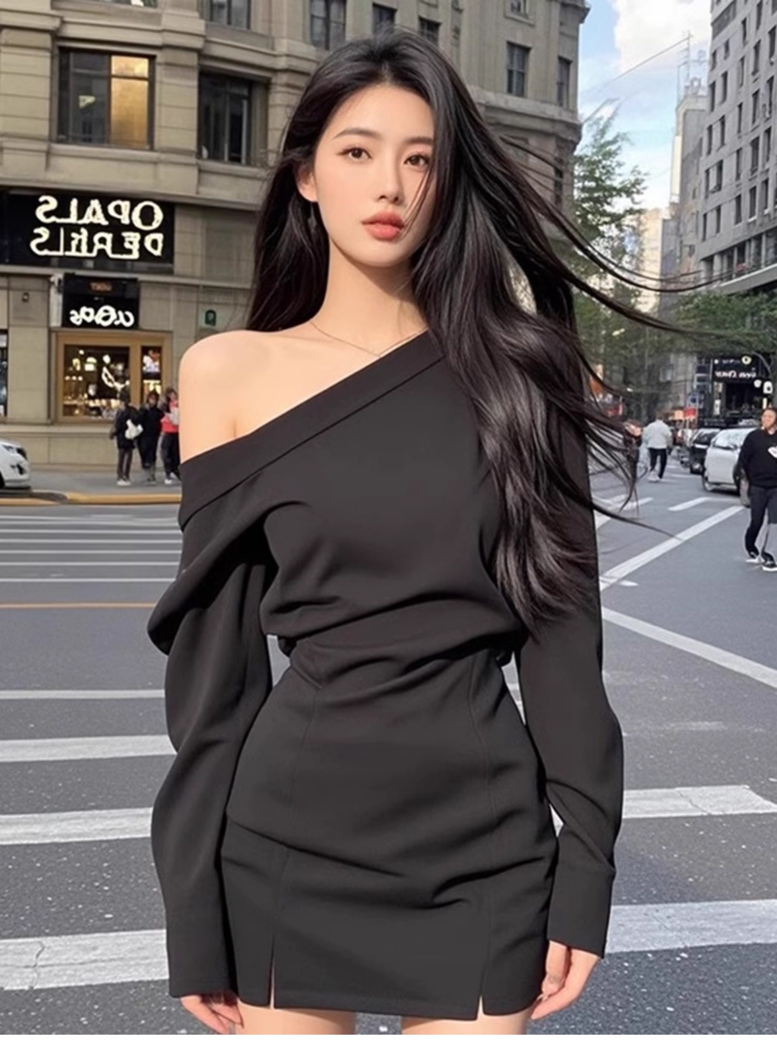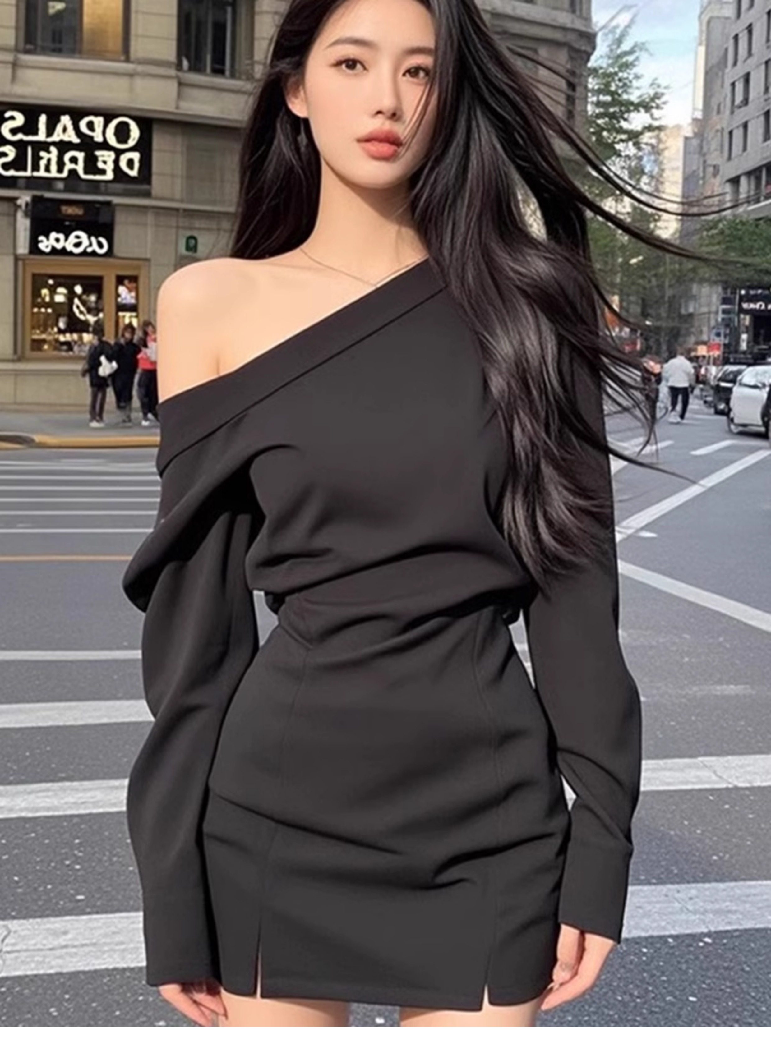 Pure Desire Sexy Wind Slant Shoulder Split Waist Fitted Dress Female Fall and Winter New Arrival Fancy Elegant Silm Versatile Skirt