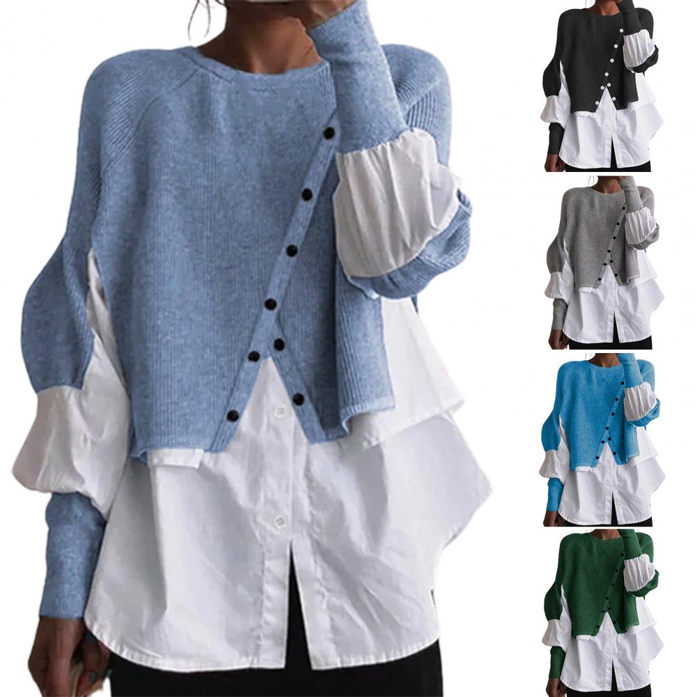 A wide range of features are included by this sweater such as shirt and sweater patchwork , irregular, color block and button decor designs, making the sweater so trendy and fabulous.